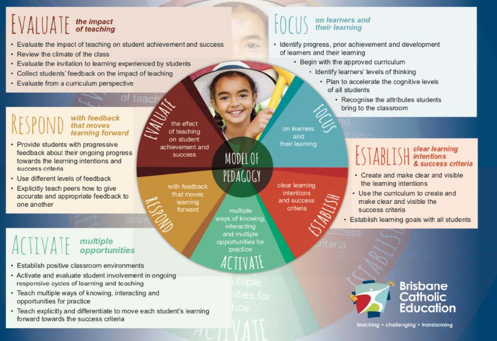 Christ the King uses the BCE Model of Pedagogy to provide evidence-based, precision and responsive teaching that results in learning progress and achievement for each student. The model of pedagogy is used by teachers to guide planning, teaching and assessing, by: